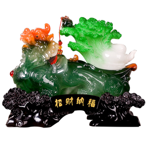 千福瑞 貔貅玉白菜金蟾装饰摆件