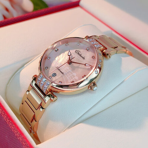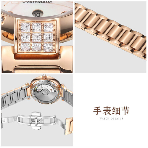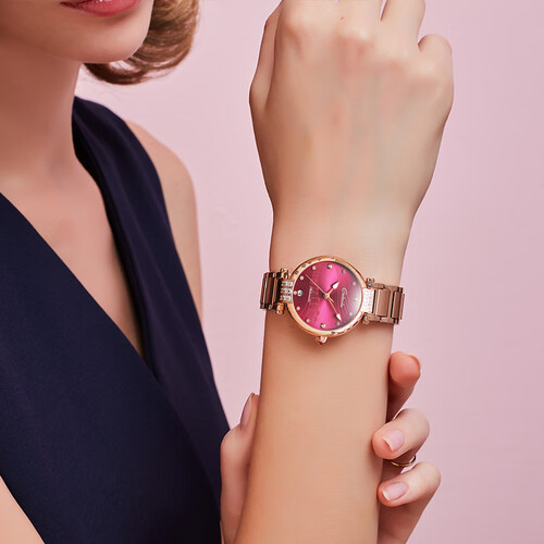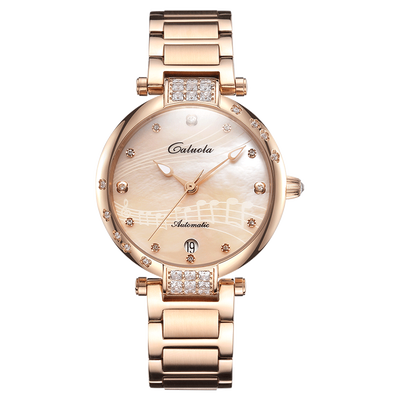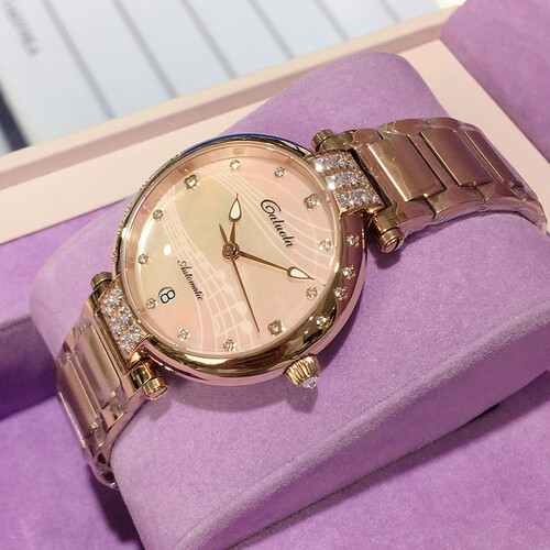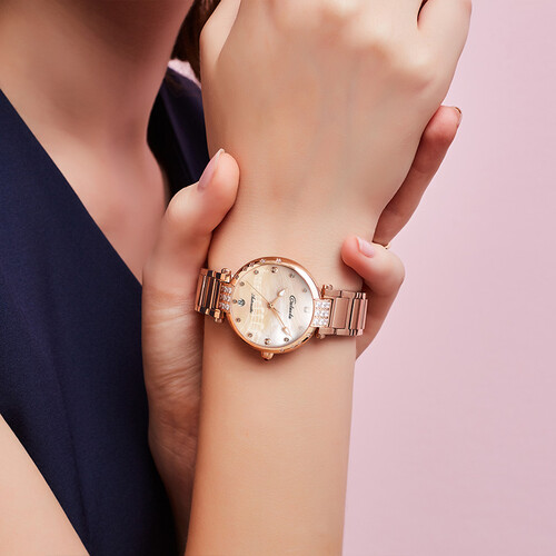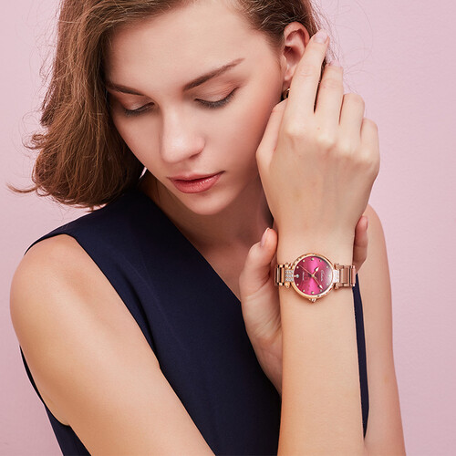 精致的玫瑰金表身唯美梦幻,更显出不凡品质。音符旋绕表盘设计,寓意浪漫旋律,处处精巧细腻,让人着迷。