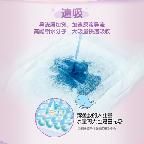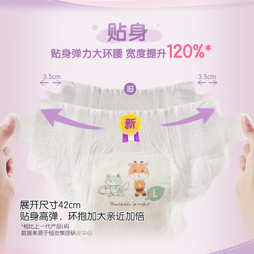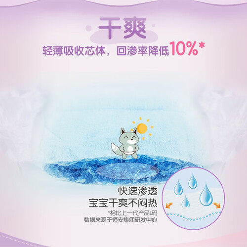 拥有全长弹性腰围,穿着更加贴合,避免发生侧漏现象。具有快速吸收锁水芯体,避免尿液外渗,让宝宝安享舒适睡眠。