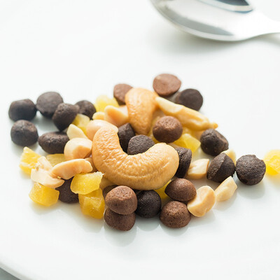 经过高温短时烘焙,不仅能够激发坚果的纯正香气,还能精准烘干果干水分,并且采用独立小包装的设计,食用起来更加方便。
