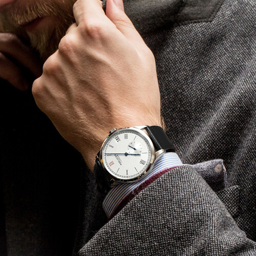 这款腕表选用简洁大表盘,搭配矢车菊烤蓝钢针,蓝白之间,唤醒敏锐的艺术感官追求更为优雅思想及品味,目之所及尽是极简主义。