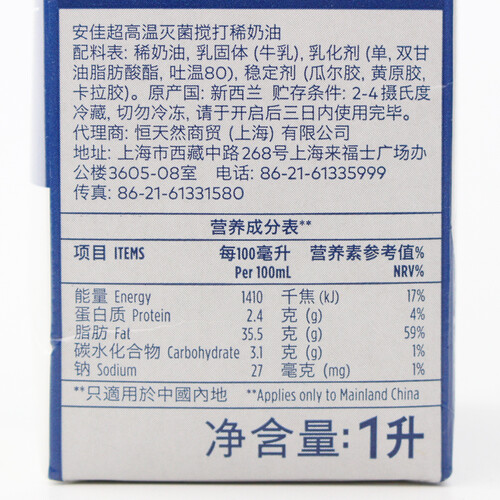 安佳淡动物性鲜稀奶油