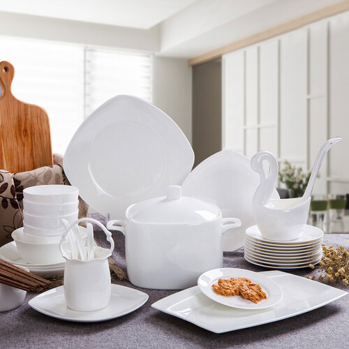 选用自然优质骨瓷材料,简约纯色欧式设计风格,釉下彩工艺,瓷面光滑细腻易清洗,高贵别致方形盘设计,造型独特有质感。