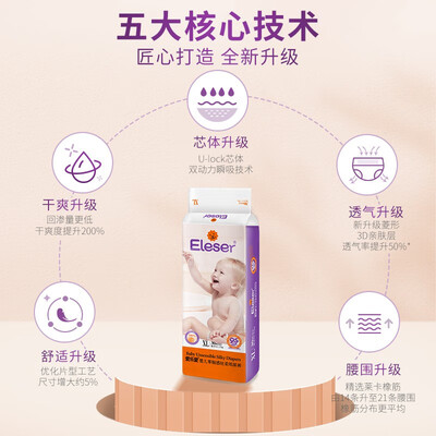 纸尿裤采用轻薄的设计,给宝宝零触感的体验,活动更加舒适自如。双动力瞬吸技术,有着强劲的吸力,尿液不侧漏更省心。