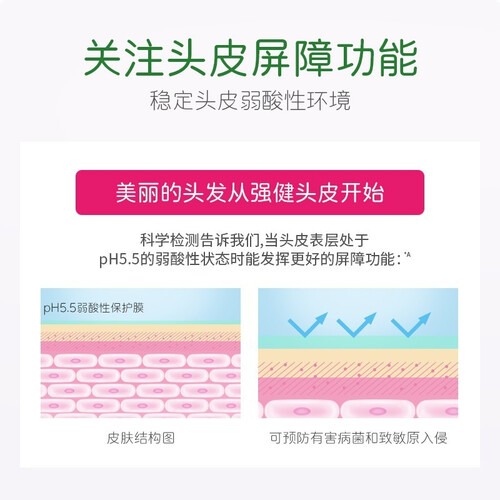 采用弱酸性配方设计,可以使头皮天然含水量稳定,从而头皮水油平衡。采用五种有效配方加持设计,可以修护强韧头发结构。
