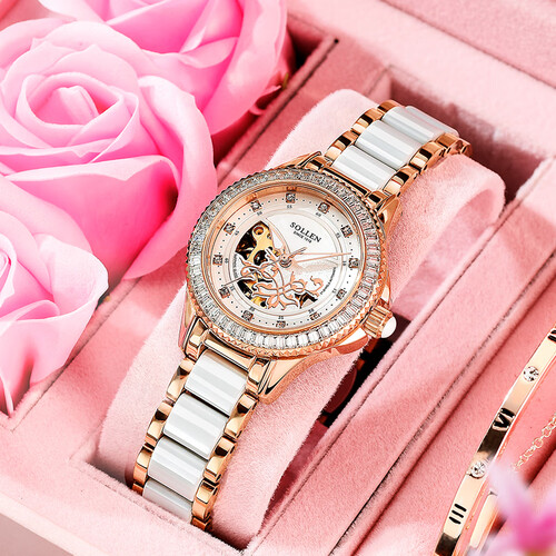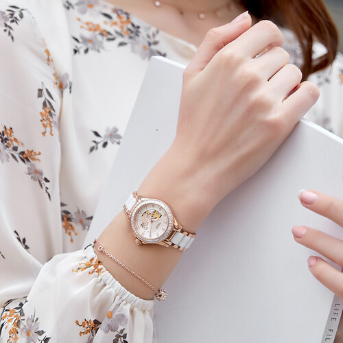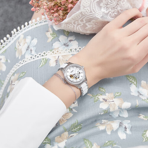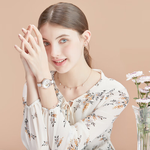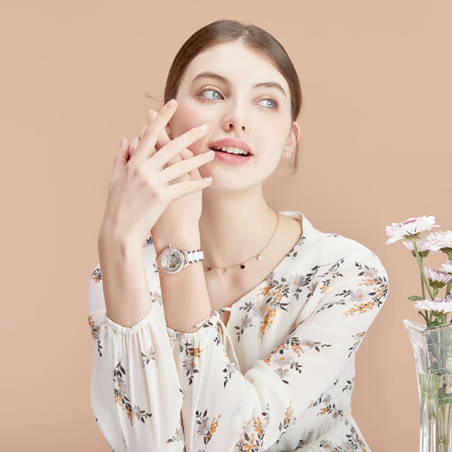 表盘采用天然深海贝母磨制,每一块贝母的纹理和色泽都是天然而成,随着光线的变幻,呈现出不同的斑斓色彩,美轮美奂。