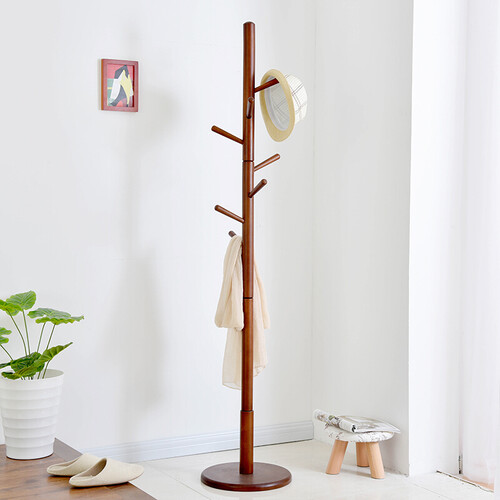 采用单杆式设计,不占多余空间,利用枝丫式拼装,打造出充足的挂放区域。经典胡桃木色,适用于多种家装风格。