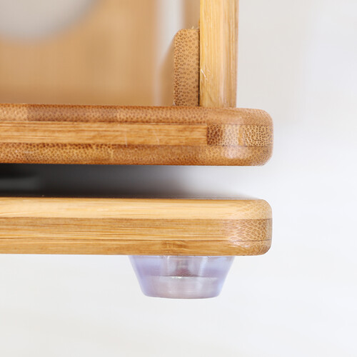 采用高山楠竹材质制作,质地坚韧使用寿命更加长,搭配上金属钢圈底盘更加稳固耐用,防滑防磨脚垫设计更加牢固结实。