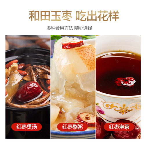 这款和田玉枣,不管是干吃,煮粥,还是用来煲汤都是不错的选择,香甜美味。
