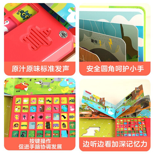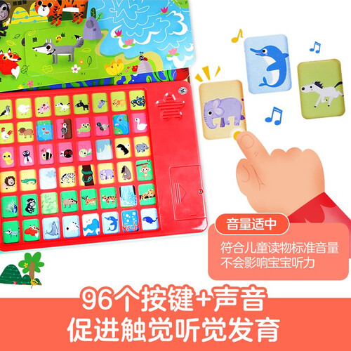 书籍里添加了96个发声按键,音效更真实,在玩耍时能带来乐趣,还能让听觉系统得到良好的发育。