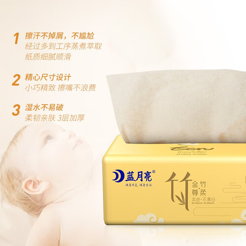 具有干湿两用特点,干用吸水性强,湿用不易破,使用更加方便。采用三层加厚设计,柔韧吸水性强,湿水不易破,使用不掉纸屑。