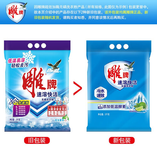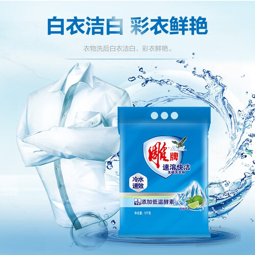 含有衣服增艳剂,洗后颜色亮丽如新,不会发黄发旧;冷水速溶,冬天也能照常使用;无磷配方,洗后不会残留。
