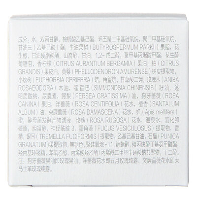 乳霜质地绵密细腻,有助于延展,带来舒适的护理体验。添加精油成分,渗透力好,为肌肤层层滋养,改善干皮情况。