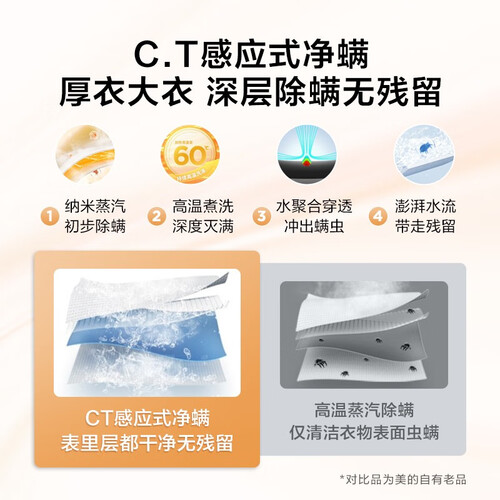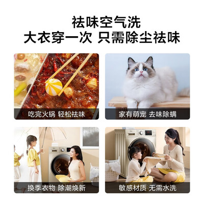 搭载无水空气洗功能,360度热风循环祛除异味,加倍柔护不伤衣。智能除螨功能,深度清除隐藏螨虫病菌,助你畅享健康穿衣。
