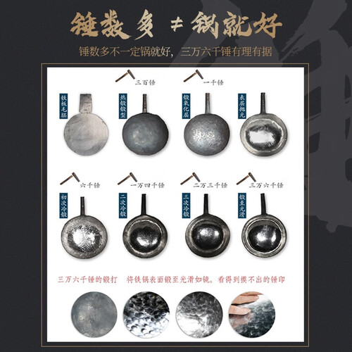 精选优质的铁材料,经过手工锻打而成,能够提升导热效率,让食物更快熟,同时烹饪时不易产生油烟,非常适合中式菜肴烹煮使用。