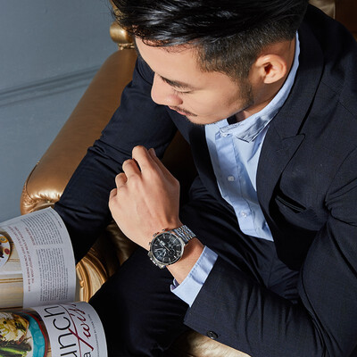 坚毅精钢制作,搭配同心圆纹理表盘,质感出众的同时更具立体层次感,加之时尚六针设计,细节之处彰显非凡工艺。