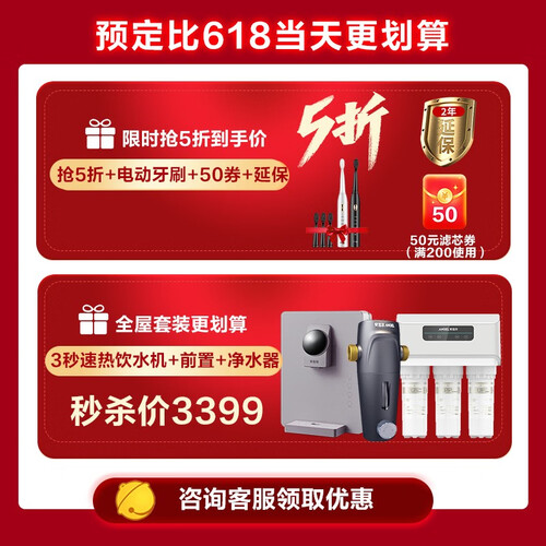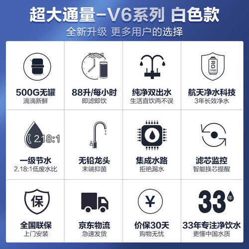 搭载长效反渗透技术,有效去除99%的细菌病毒重金属,经过6重深度净化,出水可直饮。还有畅快大流速,用水0等待。