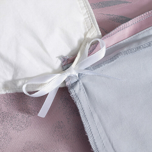 富有莹润肌理质感的提花融入床品之中,藕粉色的温柔色调更增添出丰富的视觉层次。AB面的设计,里面是纯棉面料,舒适柔软。