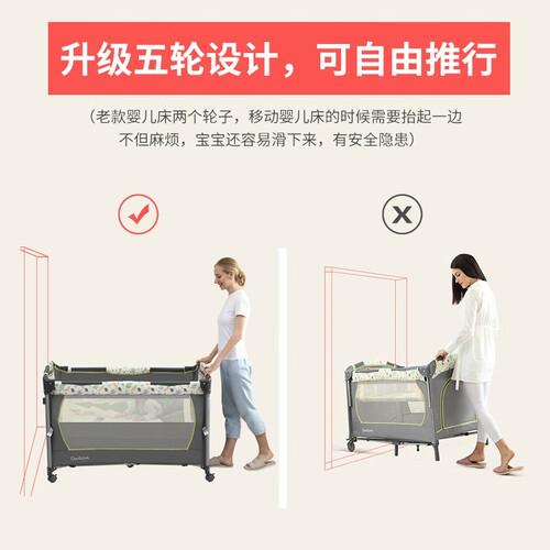 底部配备静音防滑轮子,推行省力噪音小,不会磨损地板更放心。采用二层吊网,柔韧性好,抗拉扯,强力承重不破裂。