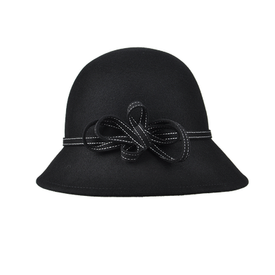 白色的车缝线装饰而成的花式蝴蝶结,提升了整体的细节品质。帽子里面有可以粘贴式的调节带,美观实用。
