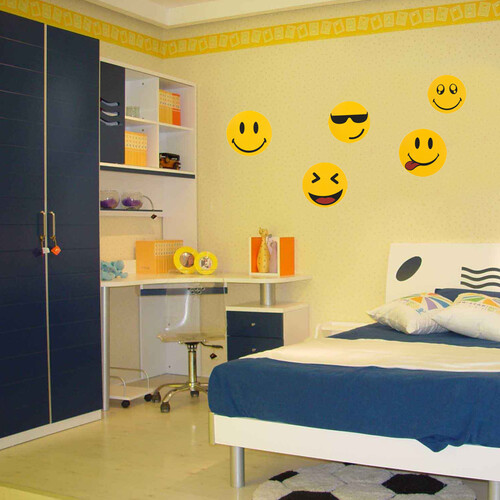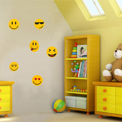 这款笑脸图案贴纸,由纯色材料雕刻,层层拼贴而成,具有立体感。采用可移型背胶,粘贴牢固不留残胶。