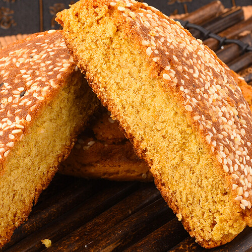 被列入省级非遗的太谷饼制作工艺,延续至今只为更好还原记忆里不变的老味道。手工制作结合双面烘烤,太谷饼口感松软。