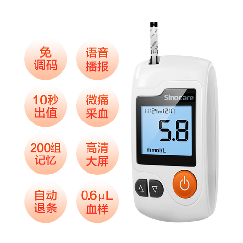 选用新型SOC测量芯片,10秒即出结果无需等待。仅需0.6微升采血量,痛感微弱。血糖高低有红绿灯提示,清晰明了一看即知。