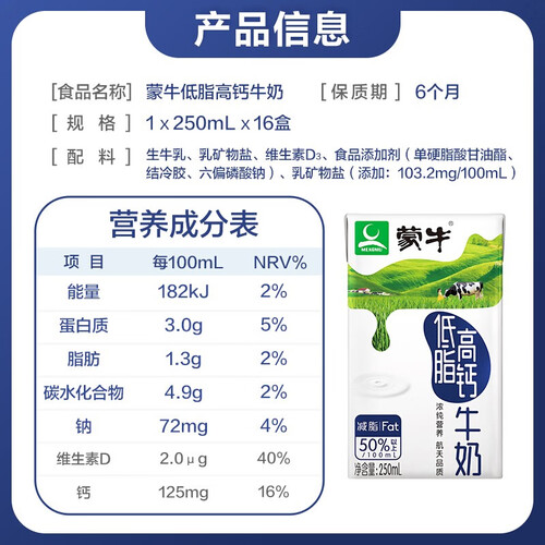 蒙牛低脂高钙牛奶利乐包