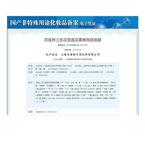 烟酰胺成分能直击暗沉,提亮肤色,改善熬夜产生的肌肤暗沉。小分子玻尿酸让皮肤更水嫩,面膜纸轻薄又服帖。