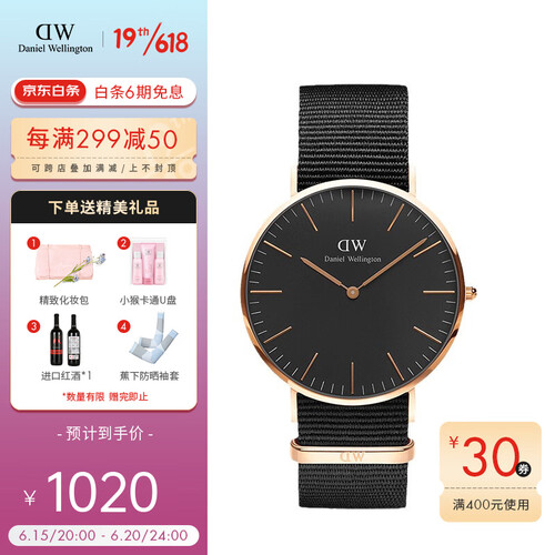 丹尼尔惠灵顿 金色边黑表盘手表