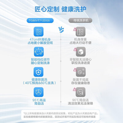 采用纤薄机身设计,可以自由嵌入橱柜,轻松融入你的家,内设不平衡自校正系统,洗衣脱水过程安静平稳。