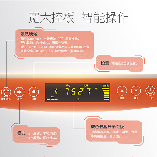 多种预约模式,满足您多样化的沐浴需求,热浴体验更好。简约机身设计,可驾驭不同家装,整体视效不显突兀感。