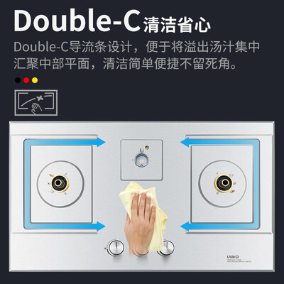 采用4.5kW的猛火灶,分区烹饪,更加省时省力。采用直喷立体火,完全上进风设计,出火均匀,燃气利用率高。