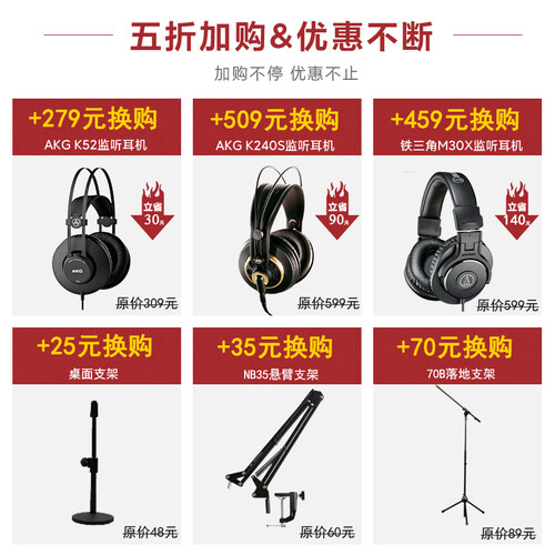 专业录音麦克风,大振膜音头设计,可以录入不同音源,适应使用环境。内部拥有弹性减震结构,防止产生摩擦噪音。