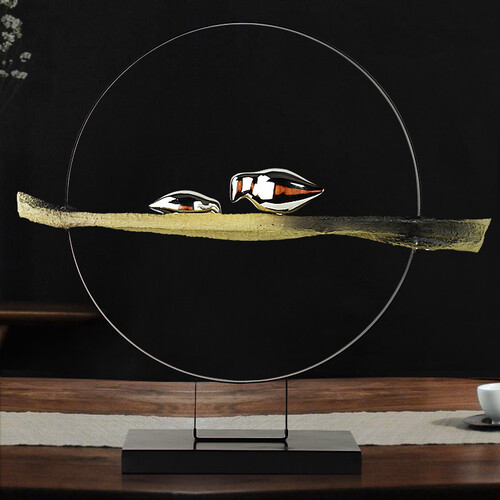 新中式 | 圆形的框架,有着禅意的韵味。摆件的底座宽大,放置稳定。金属材质制作的摆件,安全牢固且不易生锈。