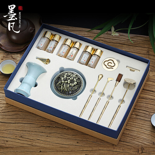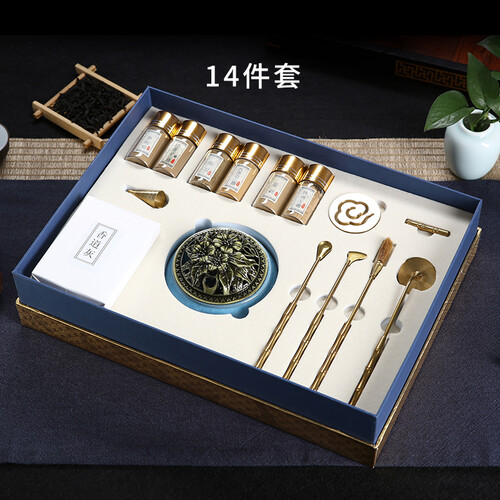 在家也能用的香道全套装,14件成套搭配,从香粉到打拓工具一应俱全,操作简单更具仪式感;精致外包装,自用送礼都有心意。