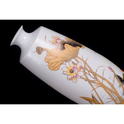 这款陶瓷花瓶经过手绘釉下彩工艺加工,图案生动典雅。同时表面平滑,整体晶莹剔透,可呈现高雅格调,提升格调。