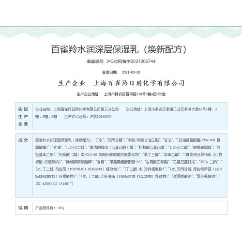 百雀羚 深层保湿清爽乳液
