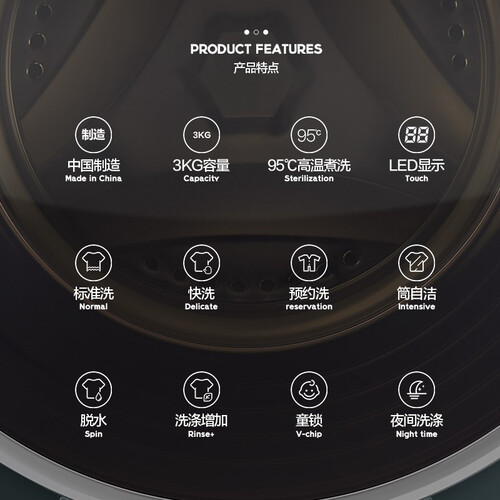 高温煮洗技术,柔和洗涤衣物,瓦解深层的隐藏细菌。质感机身外形,流畅线条处理富有视觉美感,为家居环境增添一抹亮色。