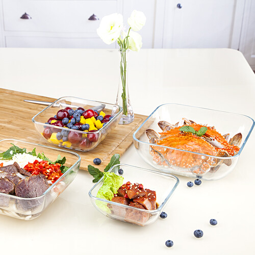 这是一款多用方形碗,无论是盛汤装菜还是盛放水果沙拉都可以满足使用需求。钢化玻璃材质搭配加厚碗身,质感细腻,耐热不易碎。