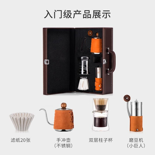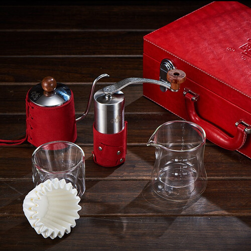 采用全景可视的玻璃分享壶,双层耐热玻璃,透视性强,防烫不易碎。不锈钢材质壶身,厚实耐磨,握感舒适,迷你磨豆机,携带方便。
