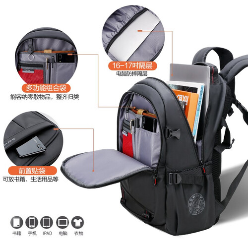 加厚的海绵填充,厚实有弹力,舒适细腻,即便长时间出行也不会感觉到累。16英寸电脑隔层,加厚防震,有效防止撞击。