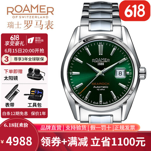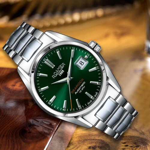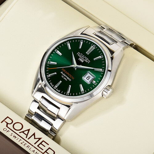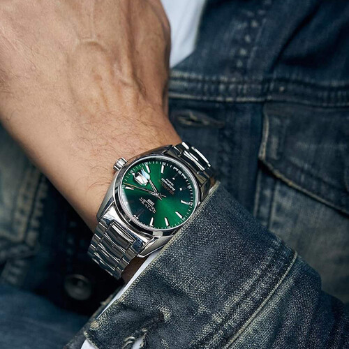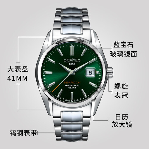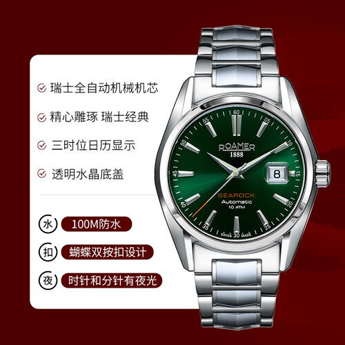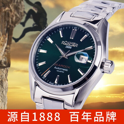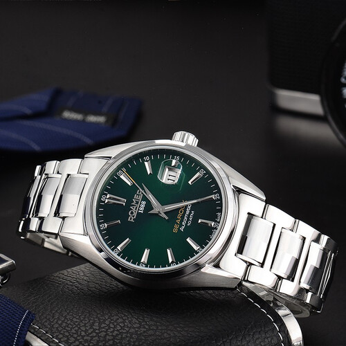 幽绿色的表盘设计,深邃大气,衬显出雅致沉稳格调。配有别致的罗纹表冠,调节时间不打滑。
