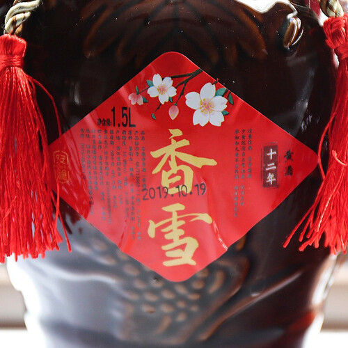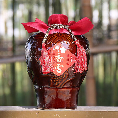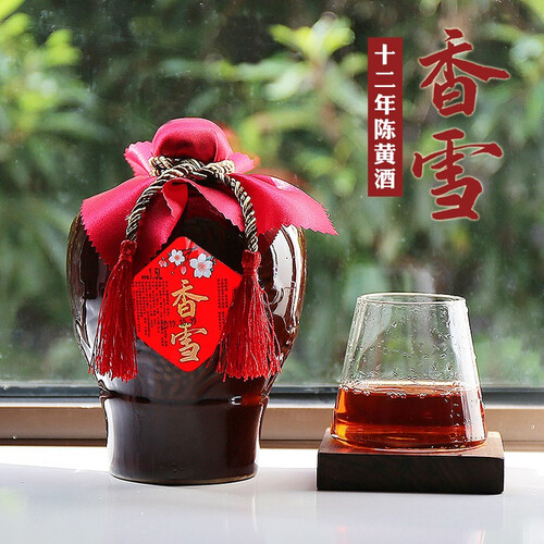 以糯米和小麦作为酿酒原料,酒液呈现浓郁的深琥珀色,入口后带有淡淡的甜味;使用大容量的复古老坛包装,更有年代感。