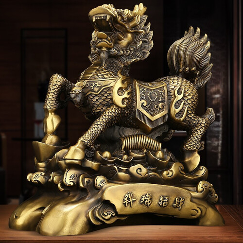 全铜麒麟,麒麟在民间是仁慈和祥象征,寓意吉祥如意,很受世人尊崇的一位上古神兽。吸财大嘴仰天鸣吼,气势磅礴,让你财富滚滚。