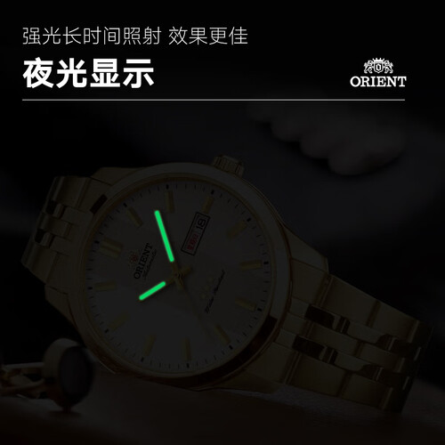白金撞色儒雅大方,尽显轻奢质感,更适合商务场合佩戴;指针做了夜光设计,夜间也可轻松读时,观看省力。