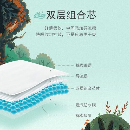 选用丝薄设计,裁剪贴身,可告别臃肿;搭配双层组合芯体,不易反渗,更干爽;添加智弹腰围,可自由伸缩,不勒小肚肚。