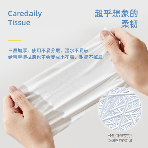 三层双压边设计,压边不易散开,更柔韧耐用。含有天然保湿因子,给你柔软轻触感,反复擦拭都不会泛红,温柔呵护你的肌肤。