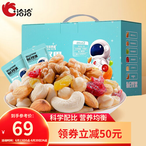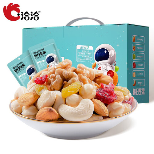 洽洽每日坚果礼盒甄选全球优质原料,坚果果干合理搭配,富含膳食纤维、维生素等,每日一袋,是随身携带的能量。