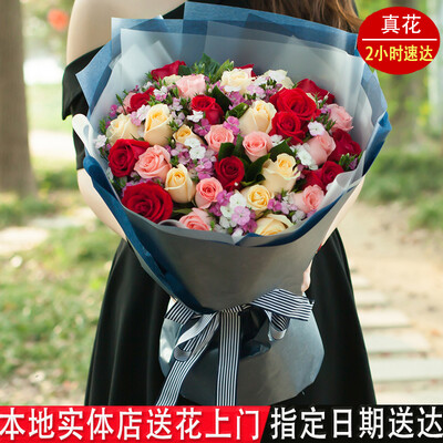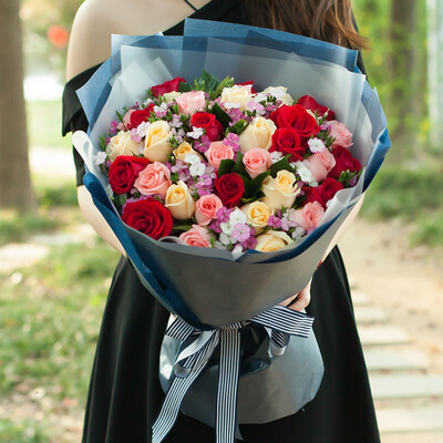 搭配时尚黑色蝴蝶,有效提升花束品位,尽享手拿优越气息。绚丽多彩的玫瑰花,清香扑鼻而来,香味使人心旷神怡。